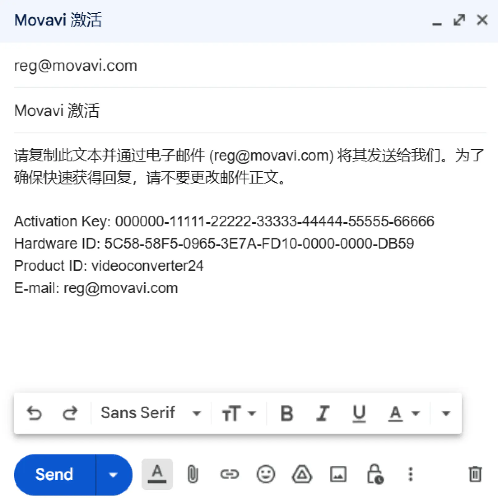 그런 다음 전자 메일을 & nbsp; 로 보냅니다.reg@movavi.com。