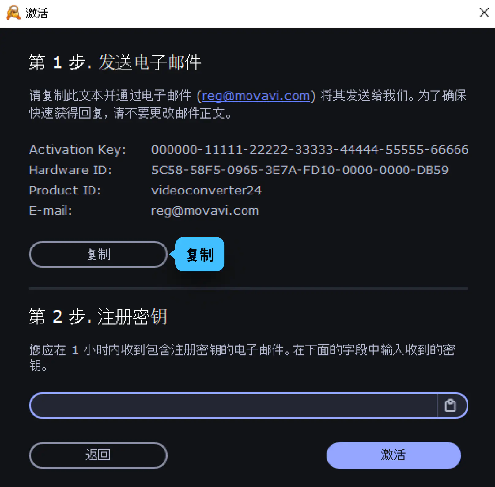부트를 활성화하려면:https://www.movavi.com/cn/support/activatekey/